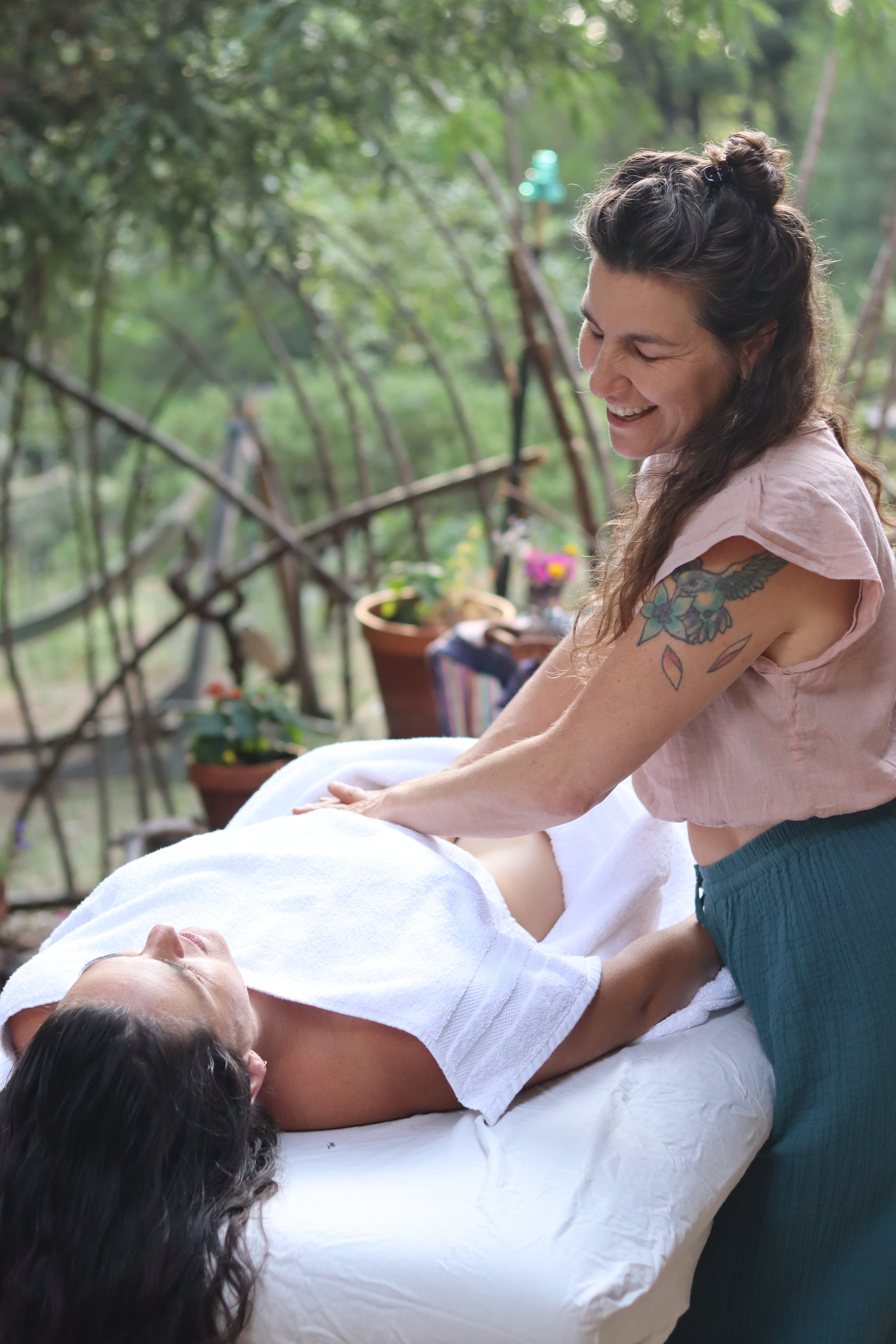 Sessions range from focused support to extended deep-dive care and may integrate lymphatic work, deep abdominal techniques, womb and spinal therapies, medicated oils, aromatherapy, and elemental or Ayurvedic approaches. Lifestyle and dietary guidance may be offered when supportive, always in response to the individual rather than as a formula.